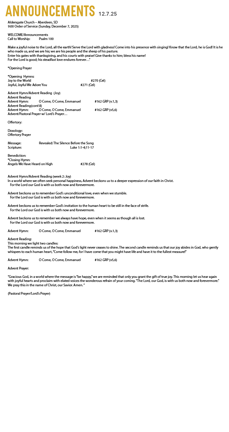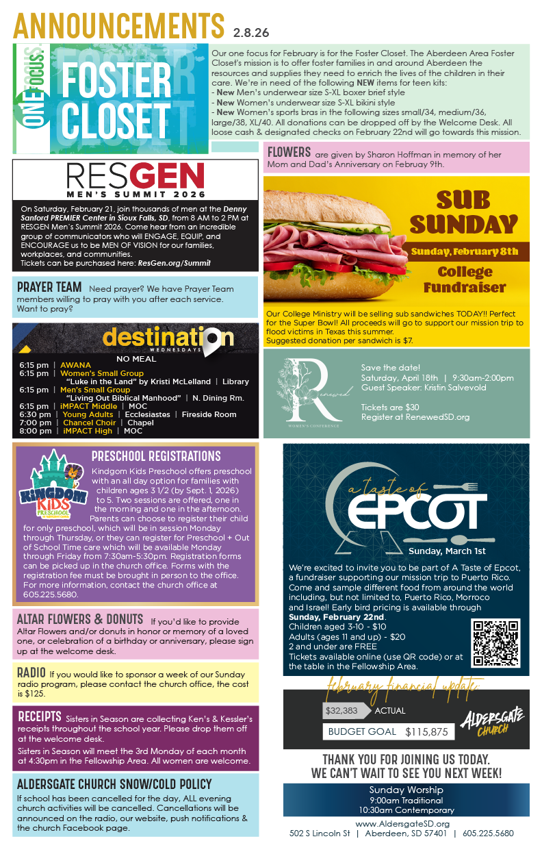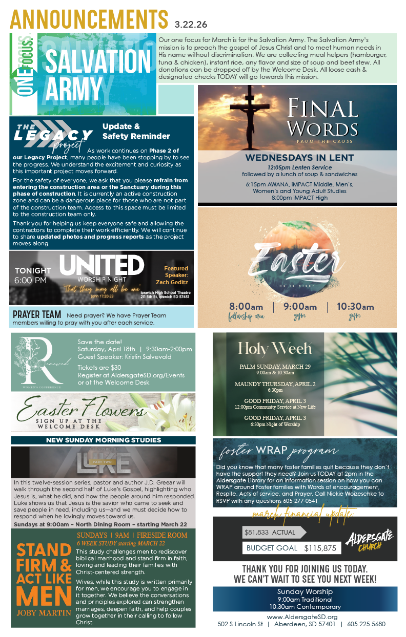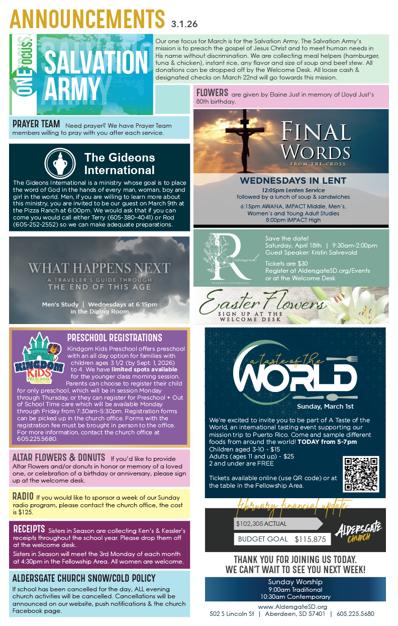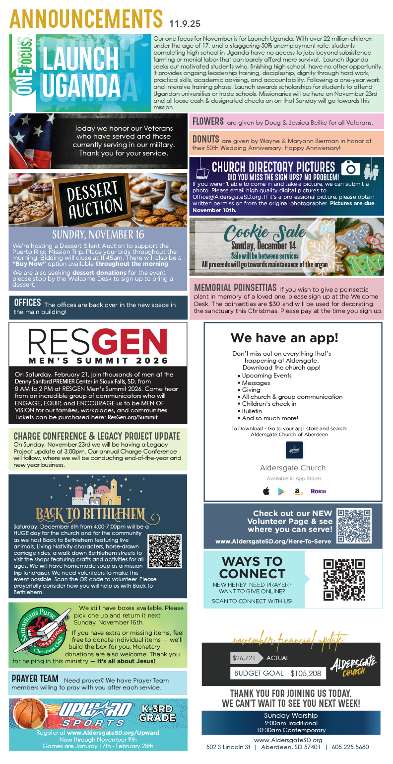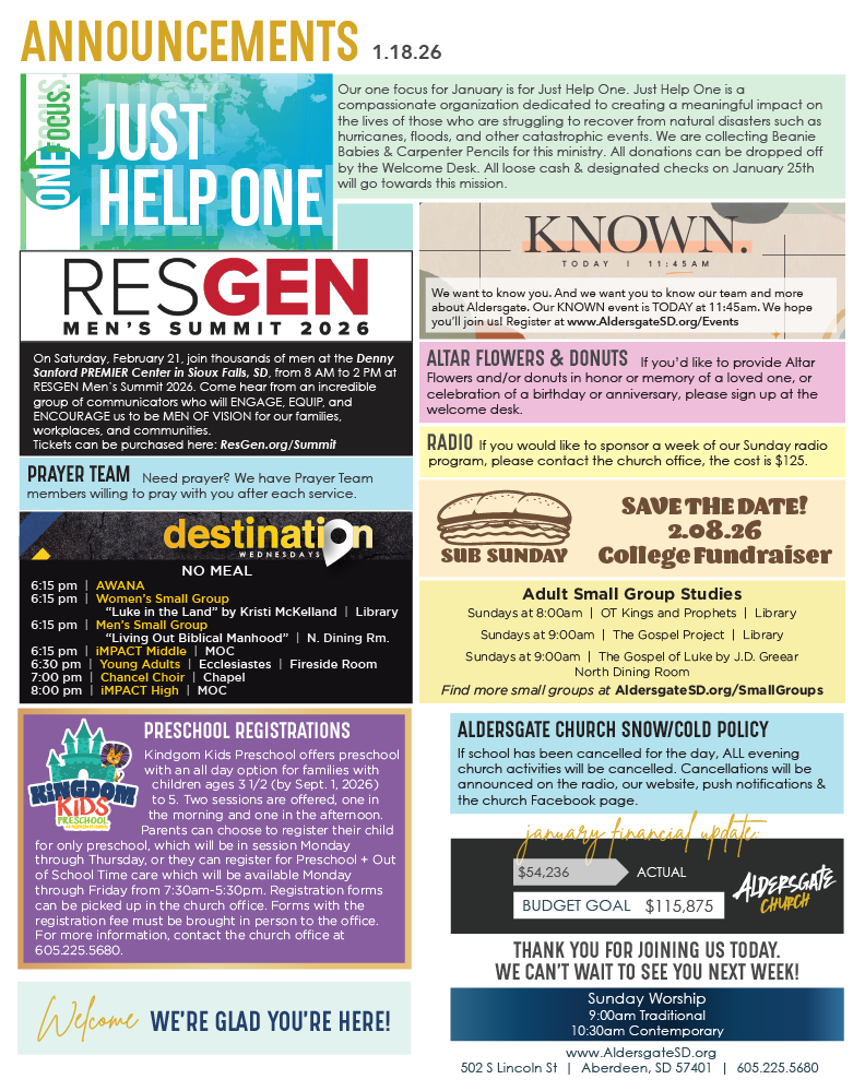 Aldersgate is a vibrant church with many different activities and events. Check out below what we've got going on and we'd love to have you join us!